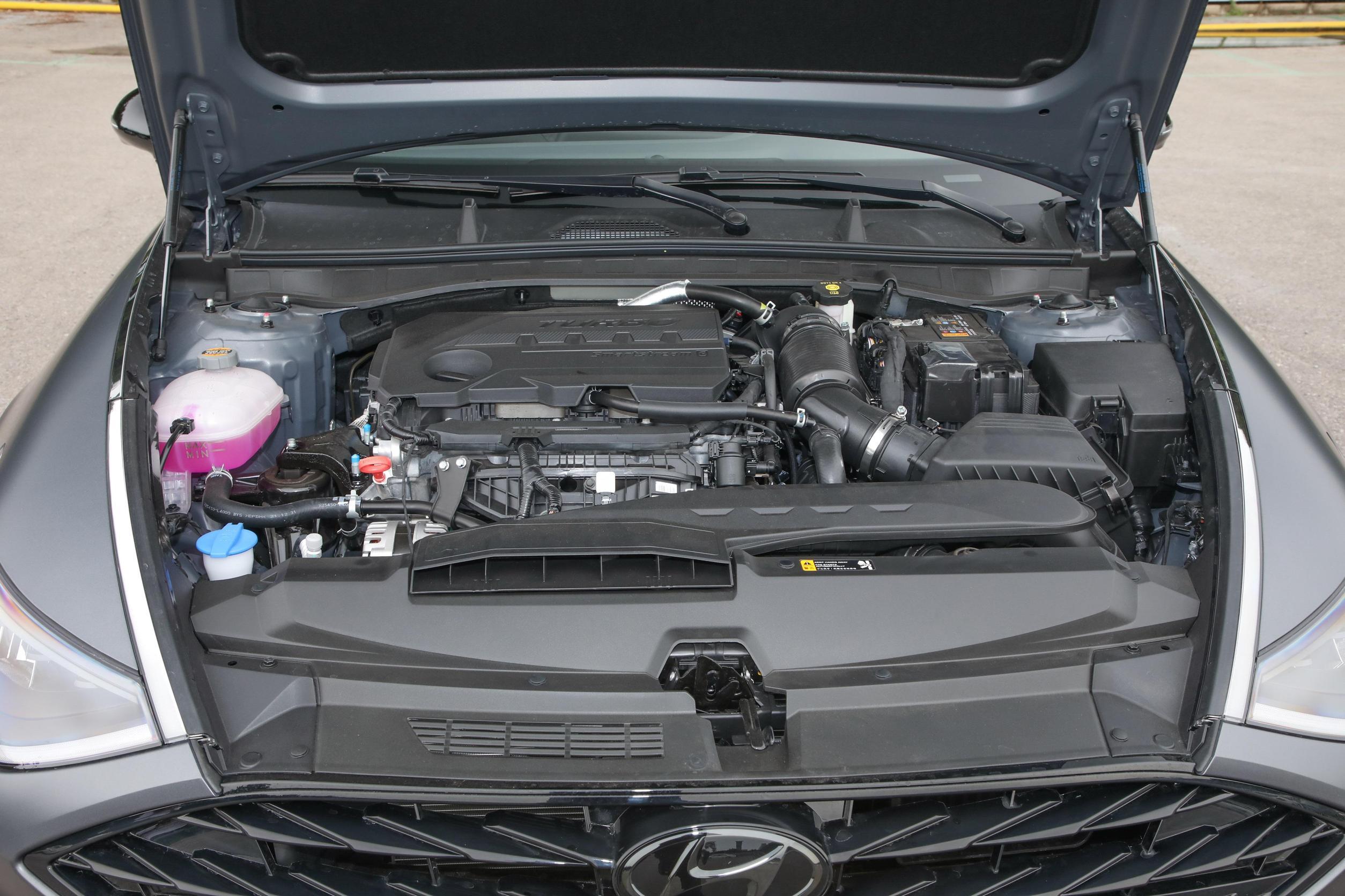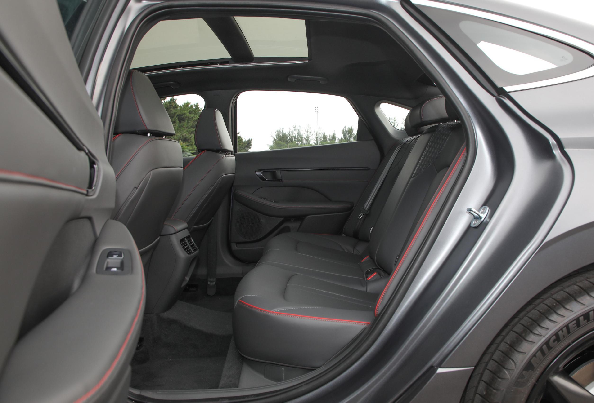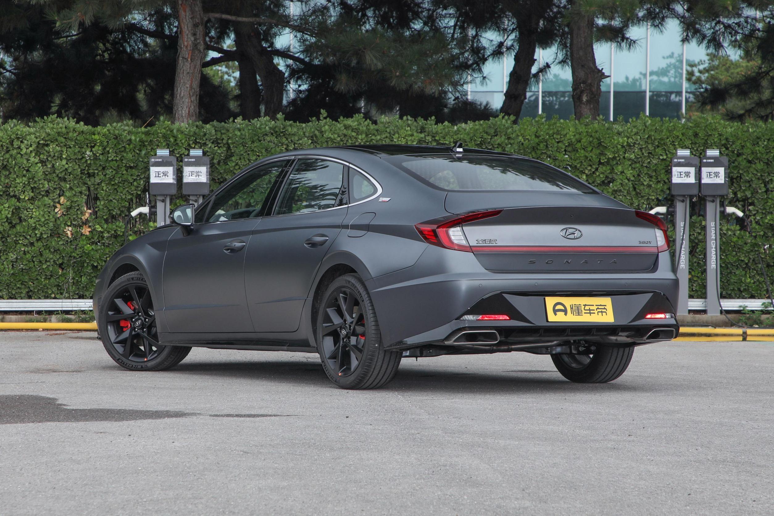 从侧面来看,现代索纳塔的车身比例非常协调,而且弧面与弧线元素丰富,看起来极为时尚,让人觉得眼前一亮,另外有些错综复杂但整体结构出色的熏黑轮毂也进一步凸显运动氛围。除此之外,车辆的尾部设计不仅层次感很强,而且贯穿式后尾灯和“小鸭尾”巧妙连接,独树一帜地构成一个环形,而后包围内高亮黑烤漆与多边形镀铬排气口也为整车带来一定的视觉美感。
