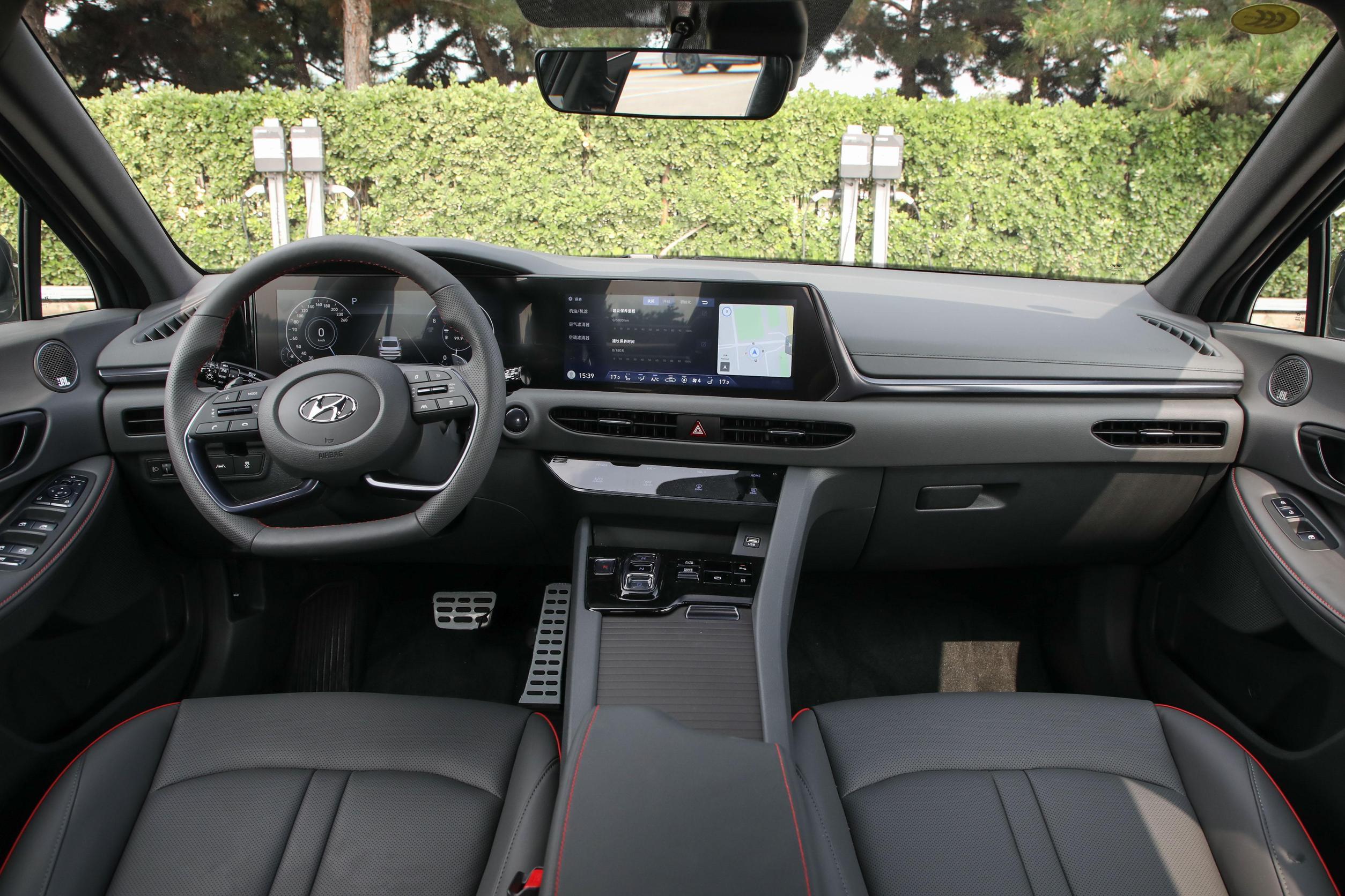 外观设计方面,现代索纳塔采用了超前的设计元素,前脸造型呈扁平化风格,配合箭羽式进气格栅,以及修长的发动机盖很有轿跑范儿,而左右两侧类似回旋镖造型的大灯组,看上去非常别致,而且与整个前脸造型相得益彰,所以灯源均为LED,其中日间行车灯为隐藏渐变式,前转向灯为流水式,细节之处用心雕琢。