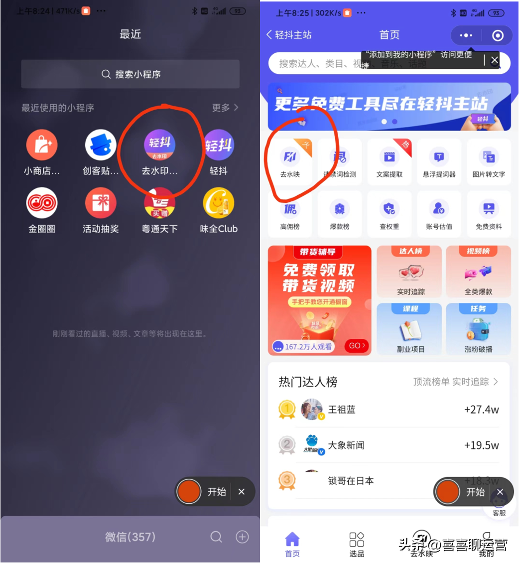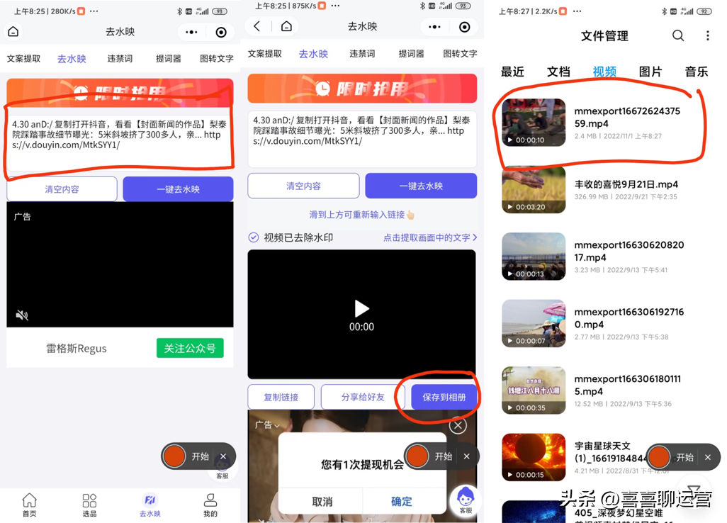 第二步:微信小程序“轻抖去水印”:去除刚刚下载视频的水印。