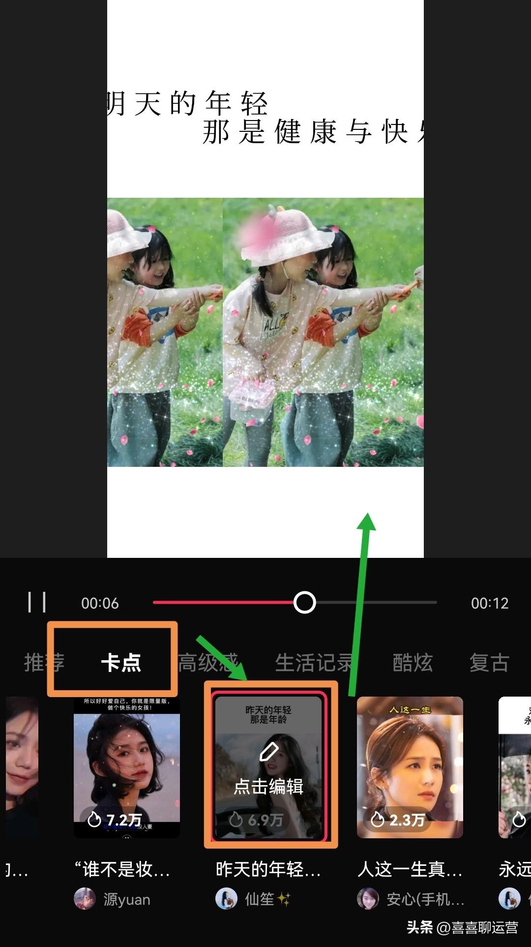 1、选择封面:有人有字的画面更能触动用户打开你的视频观看;