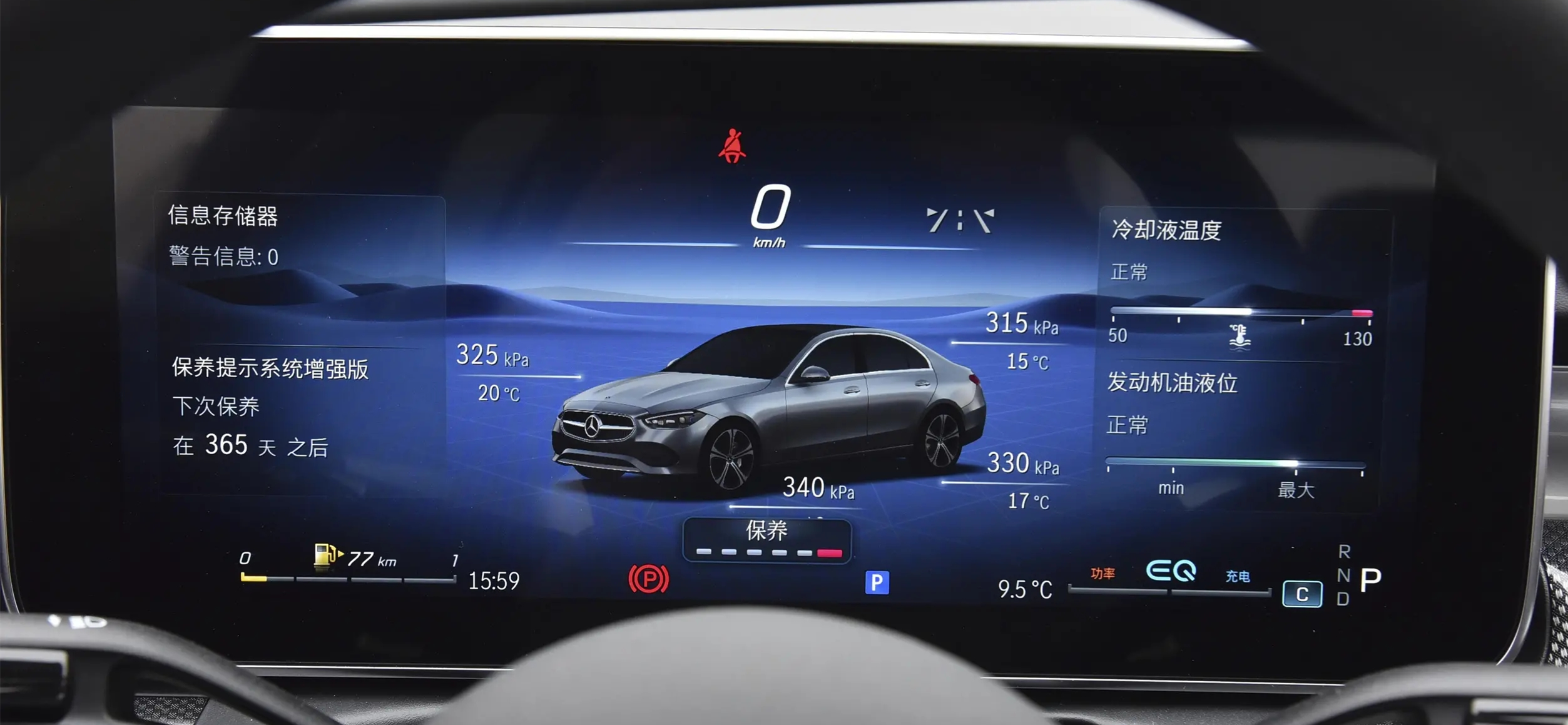 全系配备胎压数显功能,行驶时可看到胎压数据,比较安心。