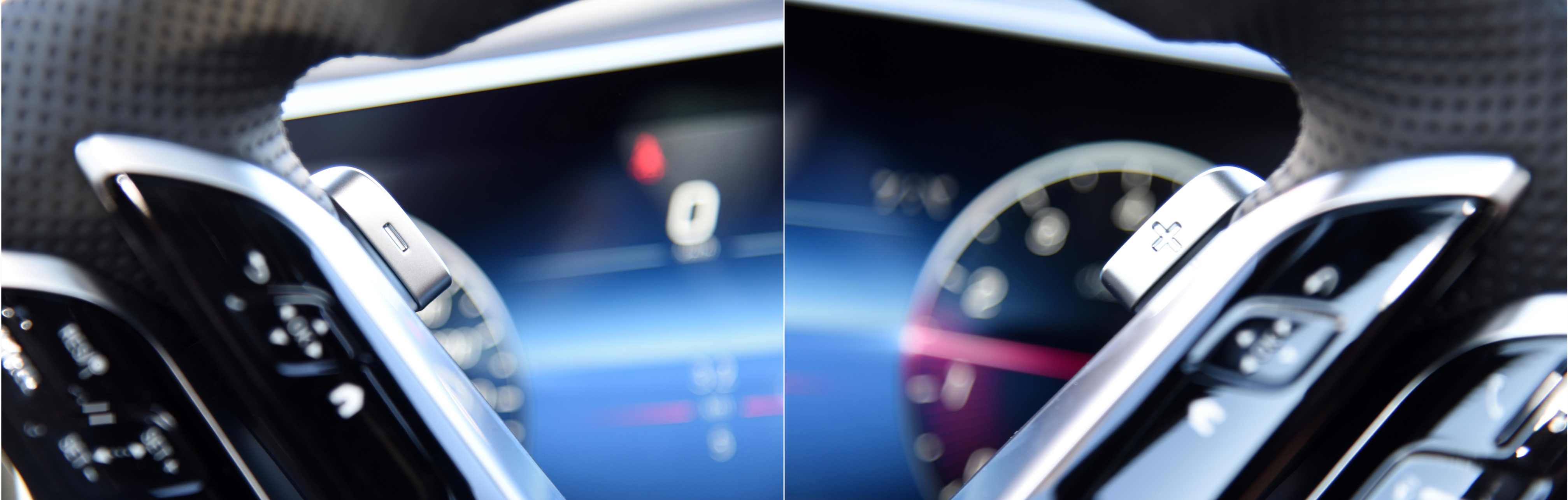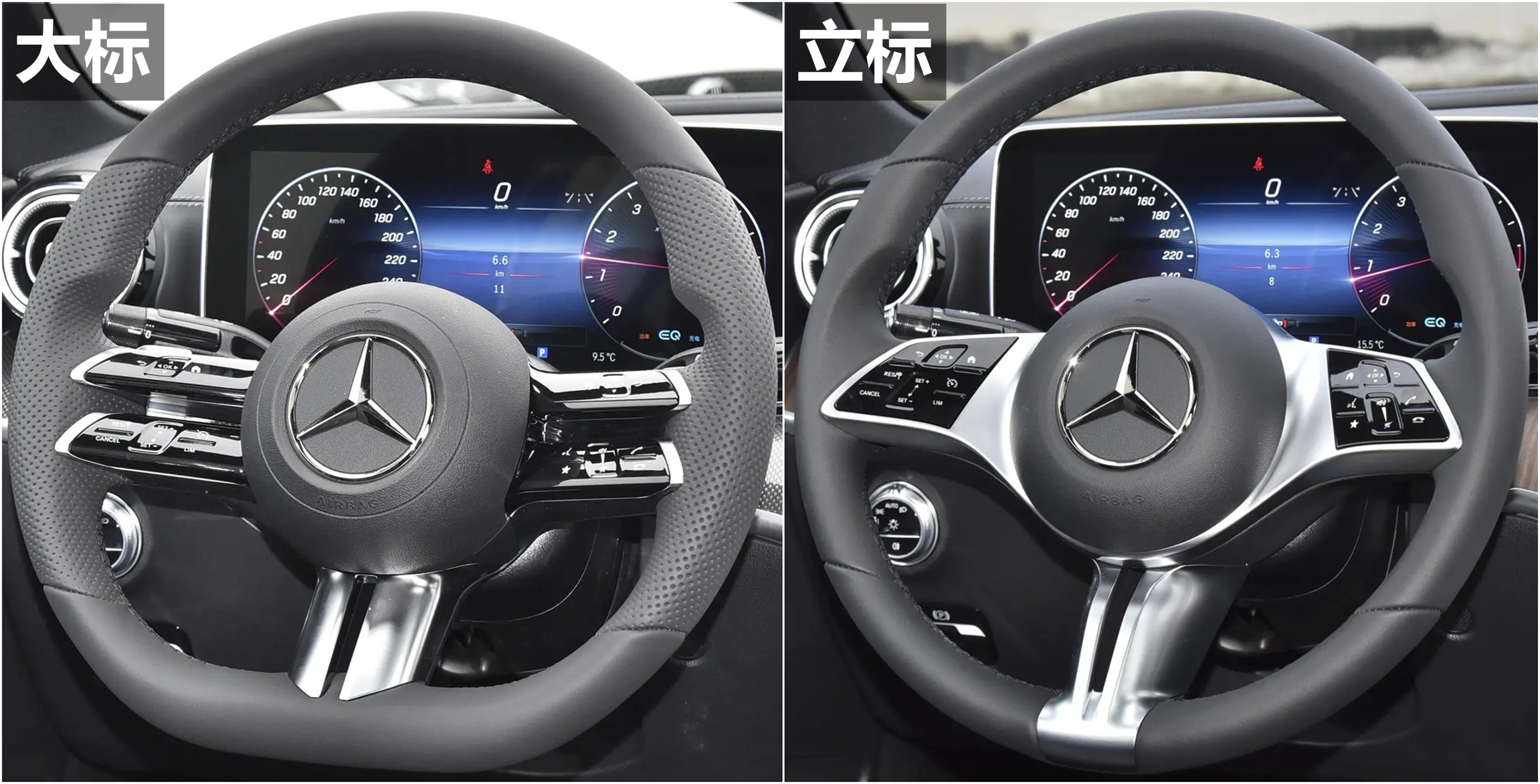 大标(运动版)车型使用Nappa皮饰D形多功能运动型方向盘,立标(非运动版)车型使用普通皮饰圆形多功能运动型方向盘,方向盘全系都带换挡拨片。
