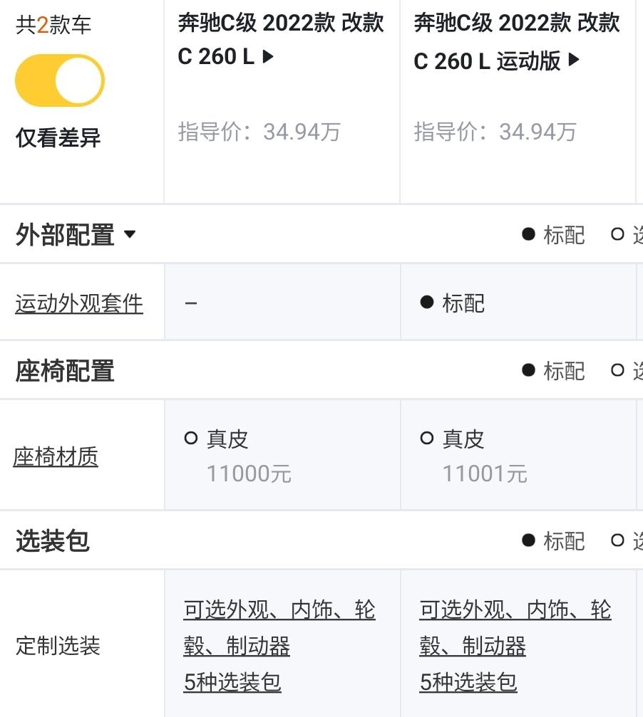 260 L 运动版对比260 L,价格一样,差别在一个带运动外观套件,一个没有运动外观套件。个人建议选择带运动外观套件的运动版车型,因为颜值更高。