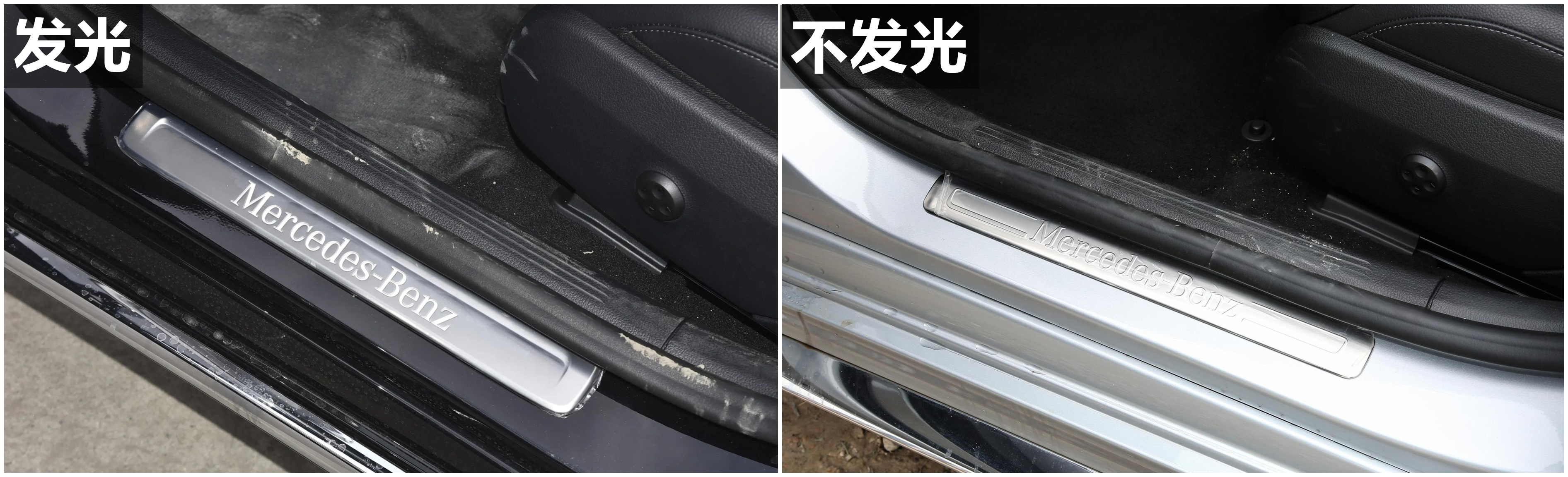 260系列车型配备带Mercedes-Benz字样的发光迎宾踏板,200系列车型配备Mercedes-Benz字样不发光迎宾踏板。