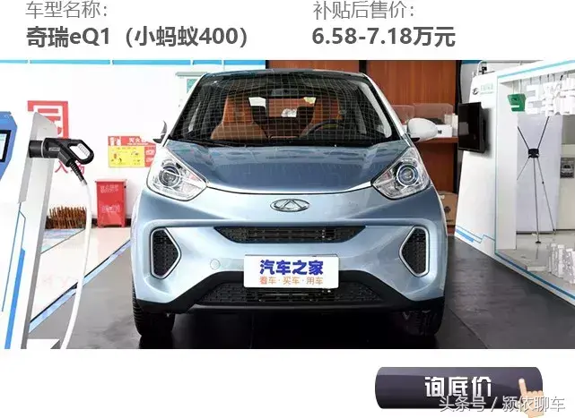 奇瑞eQ1也叫小蚂蚁,在推荐的几款车型中外观应该是最“萌”的了,虽然造型有点儿像smart,但是整体设计风格还是很有自身特点的。小蚂蚁定位是纯电动微型车,所以尺寸并不大,长宽高分别为3200/1670/1550mm,轴距为2150mm,新款车型还有2座和4座可选。