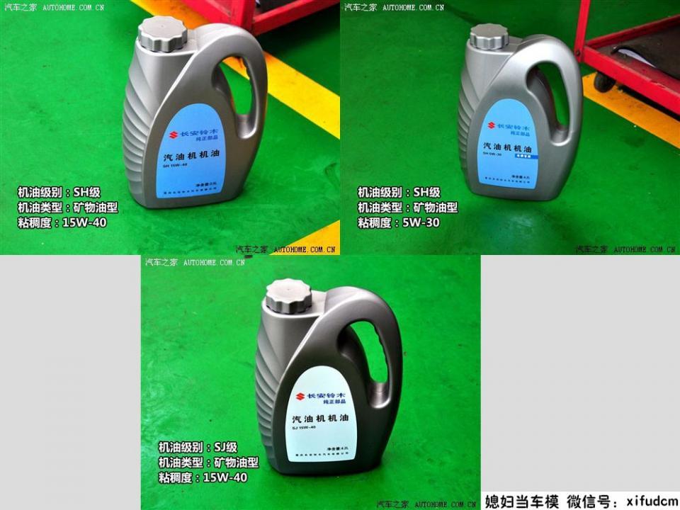 目前长安铃木在国内共有三种型号的机油,分别是SH级15W-40矿物油、SH级5W-30矿物机油以及SJ级15W-40矿物机油。而在我们截稿的时候,也了解到长安铃木已经开始为4S店配备 新的SJ级5W-30的矿物机油供使用 。此外,由于长安铃木不提供统一的零件价格,因此我们就无法准确提供给您相关报价。