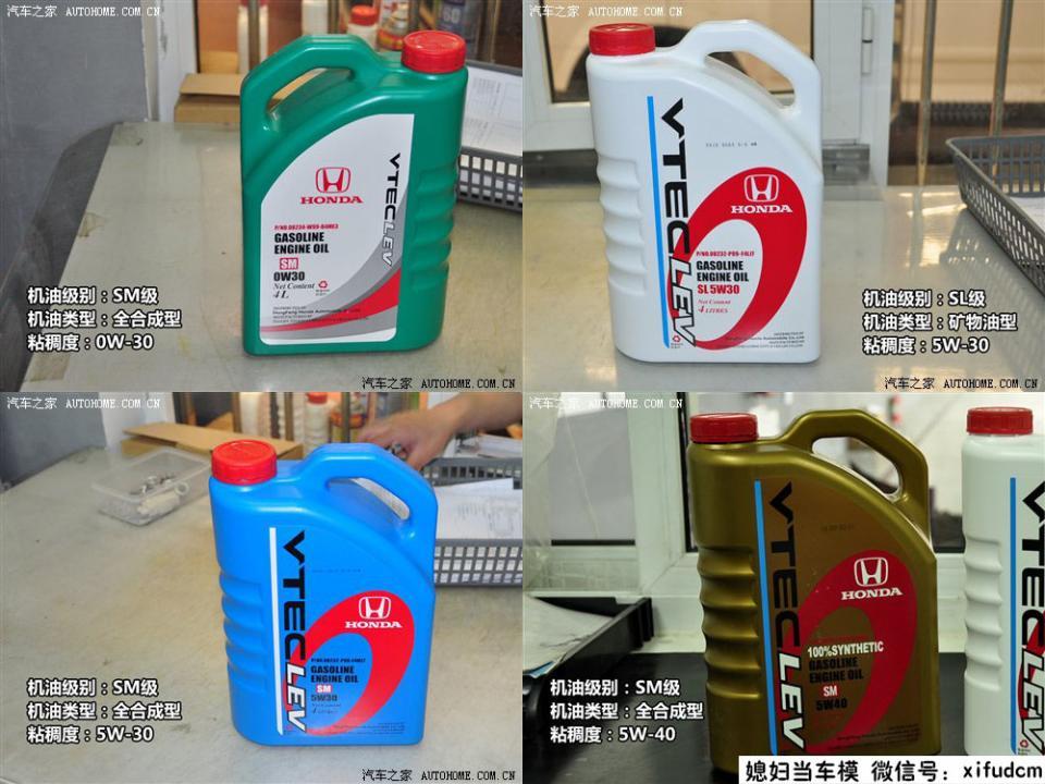 目前东风本田为旗下4S店提供的机油共有四种型号三种类型,分别是:SL级5W-30矿物油、SM级0W-30全合成油、SM级5W-30全合成油、SM级5W-40全合成油,消费者可根据自己的需求进行选择更换。