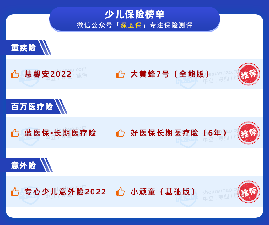 建议大家优先给孩子选择蓝医保·长期医疗险,如果因为健康问题买不了,那么再来试试好医保(6年版)。