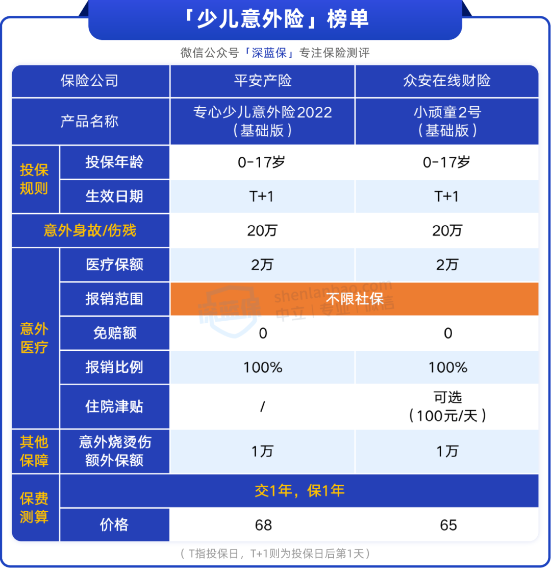 给孩子买意外险,重点关注意外医疗保障,我们挑选了两款产品: