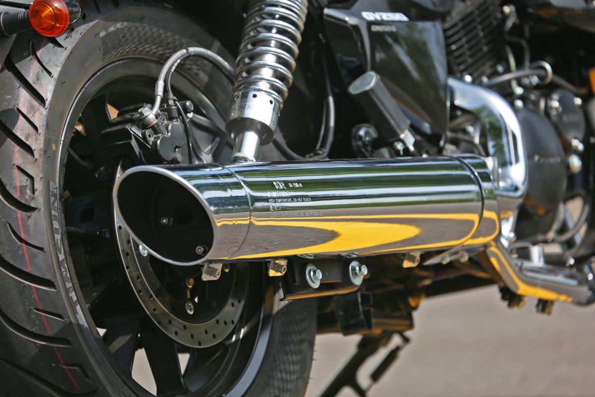 转速拉起来的时候,动力的输出集中在前中段,至尾端后,震动开始沿脚踏和车把传递上来,但对一款250cc的太子车来说,它的用户,应该较少用到120公里的时速。