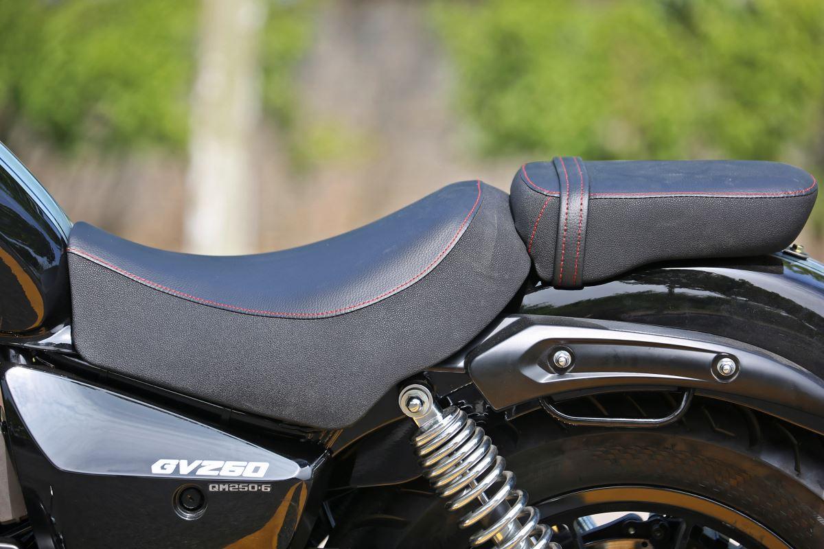 GV250的造型,看得出充分研究了国人的审美观,车头像STEED400,但轴距更长车身低矮,风格像SHADOW400,却秀气内敛。与铃木一脉相承的厂家做出的巡航车却具本田风格,不得不说是老谋深算。更从侧面看出,厂家已经被车迷们锻炼的越来越精。