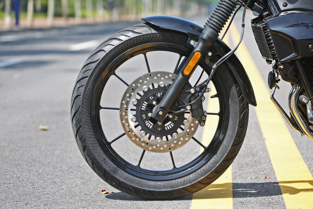 100/90-19的腾森轮胎,十幅的压铸轮圈,GV250使用了国内同级别巡航车中最大号的19寸轮圈,这也难怪为什么它有180mm的离地间隙。大轮圈的美观效果是显而易见的,同时,GV250还是首度用上浮动碟刹盘的巡航车种,博世的ABS制动系统,单向双活塞单碟,加上金属材质的前挡泥瓦。猛一看不起眼,仔细观察却经得住推敲。大叔们虽然脑门头发见少,但公文包里总会放把小梳子,没事拿出来挠一挠。