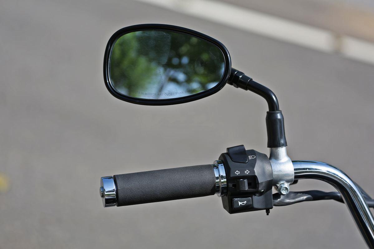 反光镜,镜杆缩短极多,但镜片没有缩水。流行的改装CNC小镜虽然够酷,可装饰大于实用。既要与众不同,还得不耽误使用效果。相当于外面端的住XO轩尼诗,回家还能切土豆丝手撕包菜。