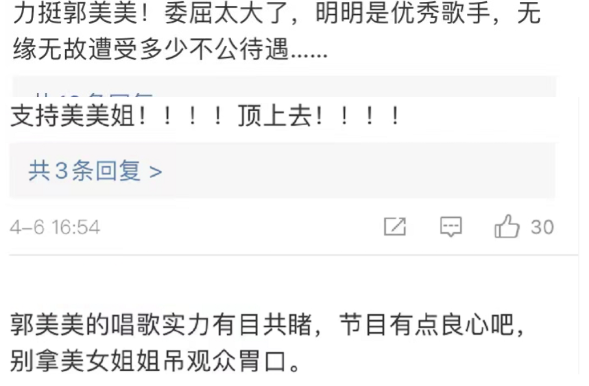面对如此天差地别的待遇,难怪郭美美会气愤发文,指责《浪姐3》将她当作棋子,就连网友也纷纷为她鸣不平。如果事实果真如此,节目组或许会因此陷入更大的争议。还未开播,《浪姐3》就已经话题满满,也许这就是节目组期待的结果吧!只希望节目组不要为了流量,放弃底线,否则只能赢了热度,却丢了口碑。