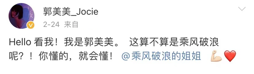 如果说郭美美的这段文字是官宣之前的热身,那么随后另一段文字,更像是与节目组的暗戳戳。一个月之后,郭美美再度发文,言语之外就像是替节目组官宣自己的嘉宾身份。由此也能看出,郭美美十分期待这次破浪之行,也希望能借助这档节目重新展现自己的实力。