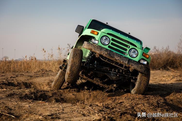从图片上我们可以很清楚的看到,212狙击手的前轮前缘已经超出了进气格栅的延长线,所以当我们在视觉上第一次去观察这台车的时候,就会自然而然的把落脚点放在车辆的下装部分。碰巧的是,对于一辆经典越野车来说,往前移动的车桥,又会很直白的传递出两个性能优势点——接近角和绞盘位。经典的FJ40系列,其实也是如此的设计,包括我们很熟悉的牧马人,同样也是这样的设计。