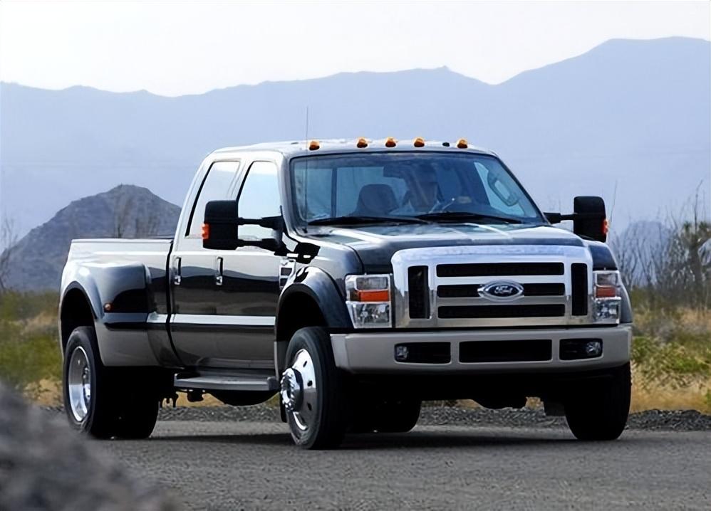 F150虽然是很传统的美式 皮卡 ,但是外形却非常符合国人的审美, F450 就不一样,它就是最纯种的美国农场用车,光是停在路边,你就能感受到地地道道的美式 皮卡 ,独有的霸气,该车的体格非常庞大,大到能够能和中型货车比一比了。