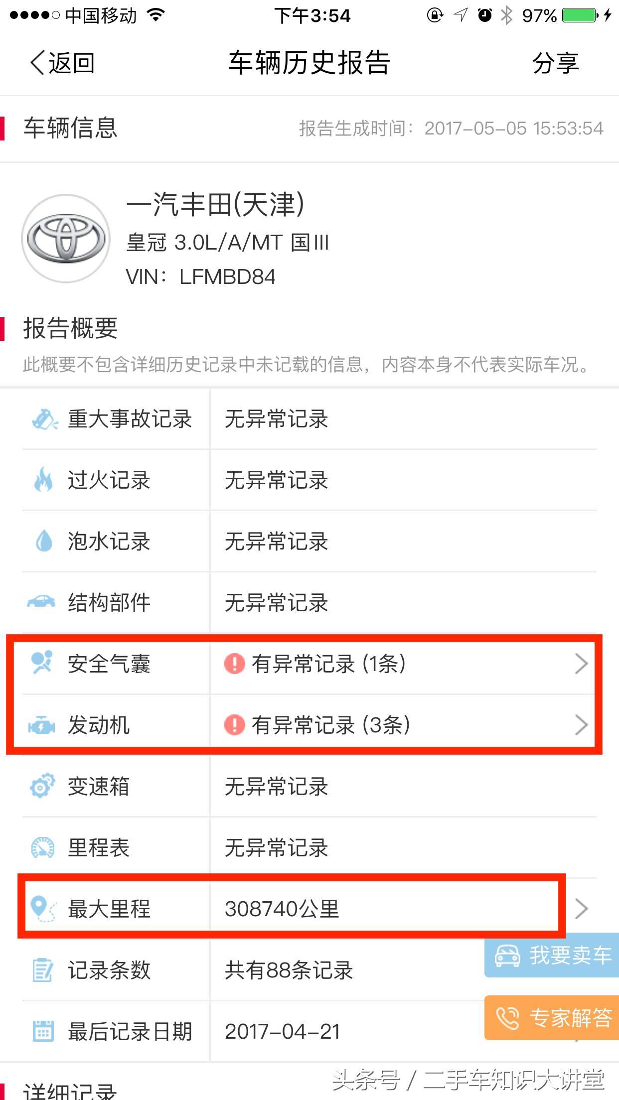 整整 30万公里 ,发动机还有过3次修理记录。一般的消费者一听30万公里就会吓尿,哪里还敢买?