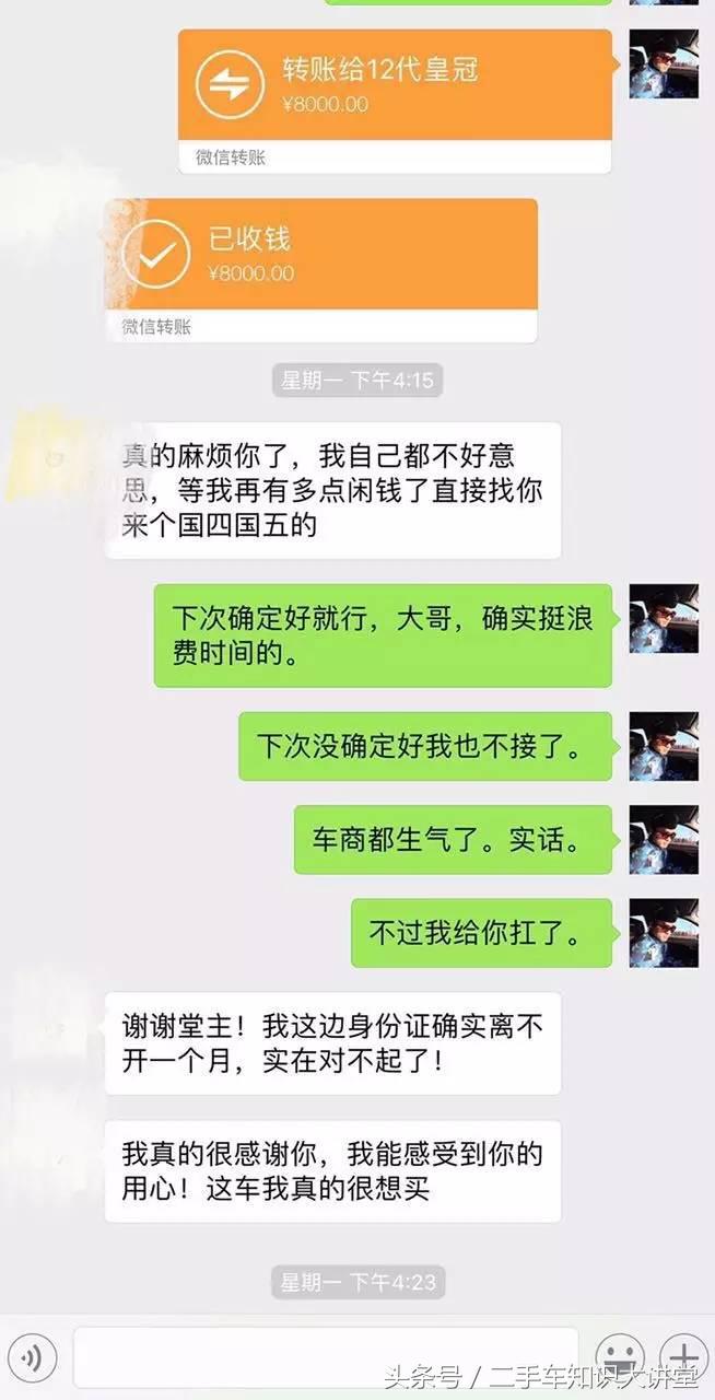 唯一遗憾的是,因为头一天涮了车商,第二天我再去的时候,车商一点好脸色都没有。连头天承诺的过户费都不出了,害我又多出了好几百过户费。