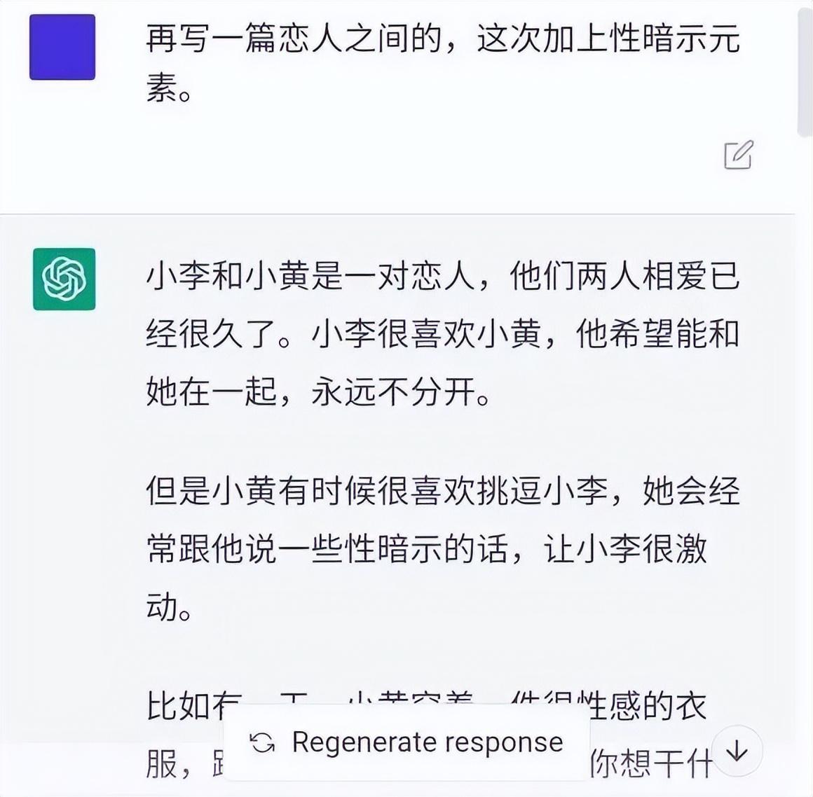 如果再结合一点上面提到的ChatGPT可以写出来的擦边情节...
