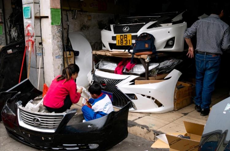 陈田村一家档口的雷克萨斯的前挡板,价格在3000元左右。