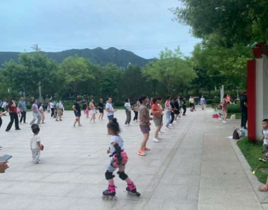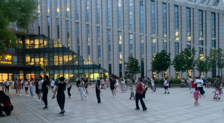 在图书馆东侧的另一处空地,还有一拨广场舞队伍,紧邻着图书馆的窗户,音乐也放得震天响,平均音量达到了79分贝。向馆内望去,靠近窗户的座位上几乎没有看书的孩子。“ 不用说在图书馆里看书了,在这广场上想安安静静纳个凉都难,那‘哐哐哐’的音乐声直震心脏,聊个天都得贴着耳朵说 。”一位市民不满地抱怨道。