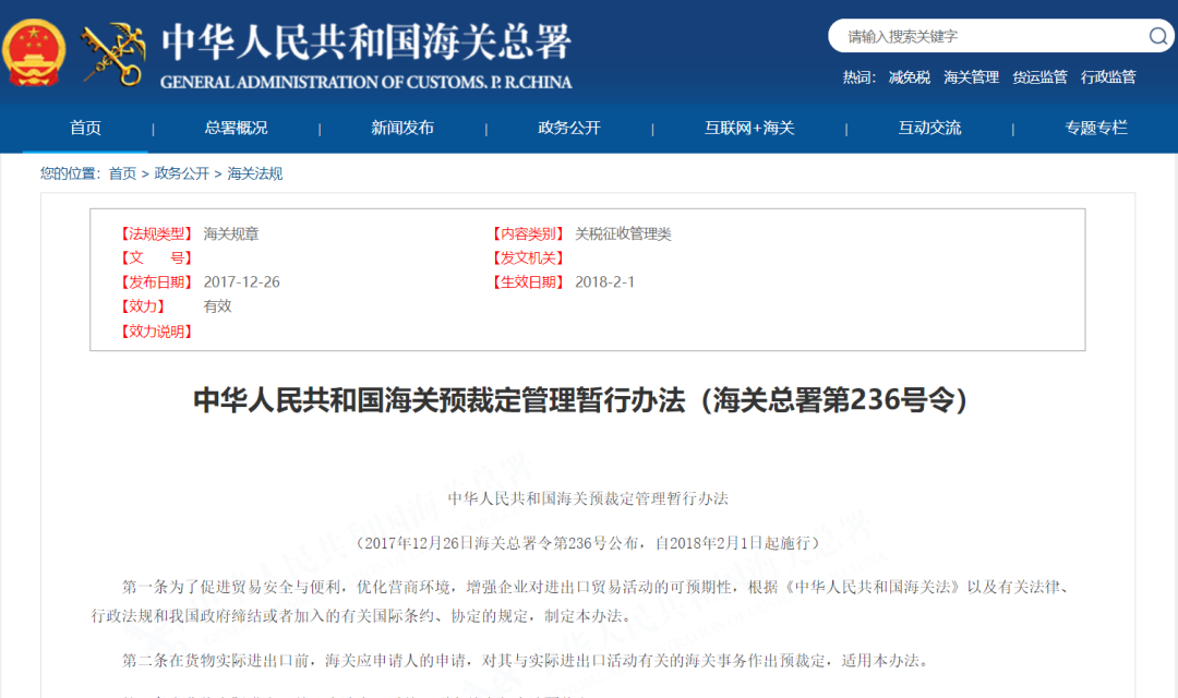 为了促进贸易安全与便利,优化营商环境,增强企业对进出口贸易活动的可预期性,海关制定《中华人民共和国海关预裁定管理暂行办法》(海关总署第236号令)。