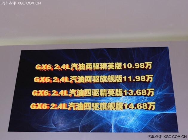 11月6日上午11时,中国西南国际汽车博览会(昆明车展)上,广汽吉奥携旗下皮卡车型GP150和SUV车型GX6针对西南地区上市,拓展西南目标市场。 GP150柴、汽油车型售价8.88-10.08万元,分别有3款车型;GX6汽油车型售价10.98-14.68万元, 共4款车型;详见下表: