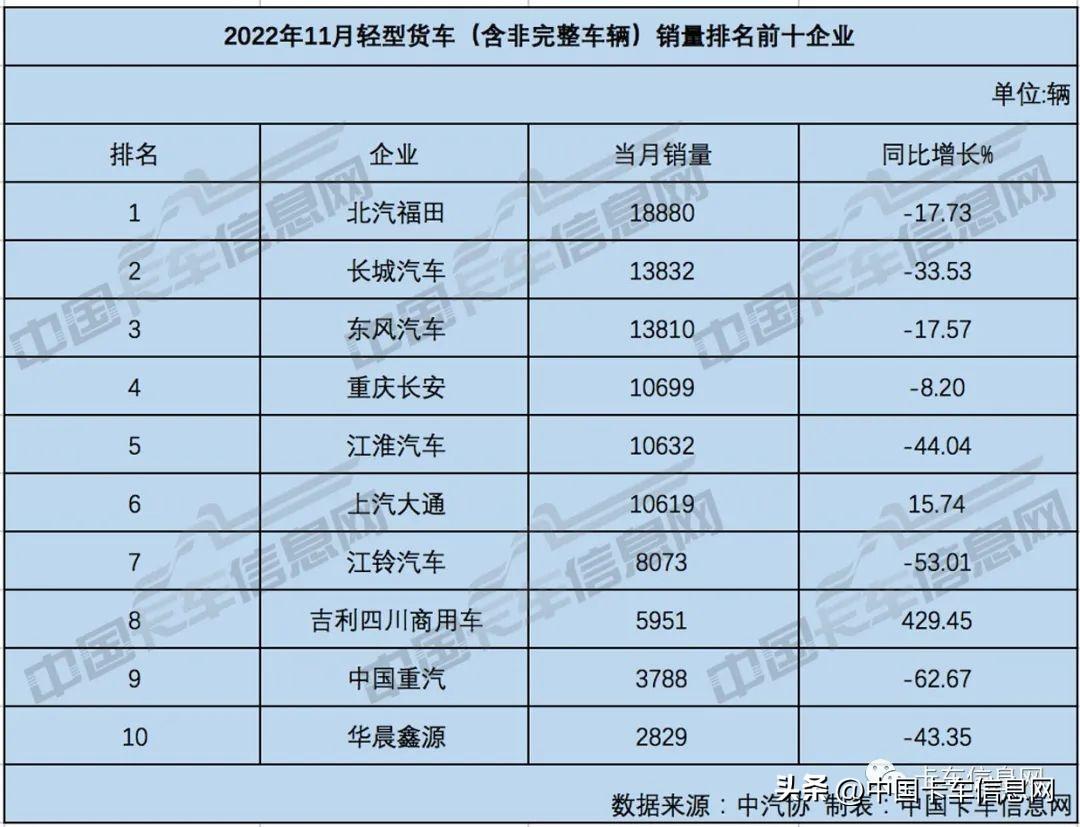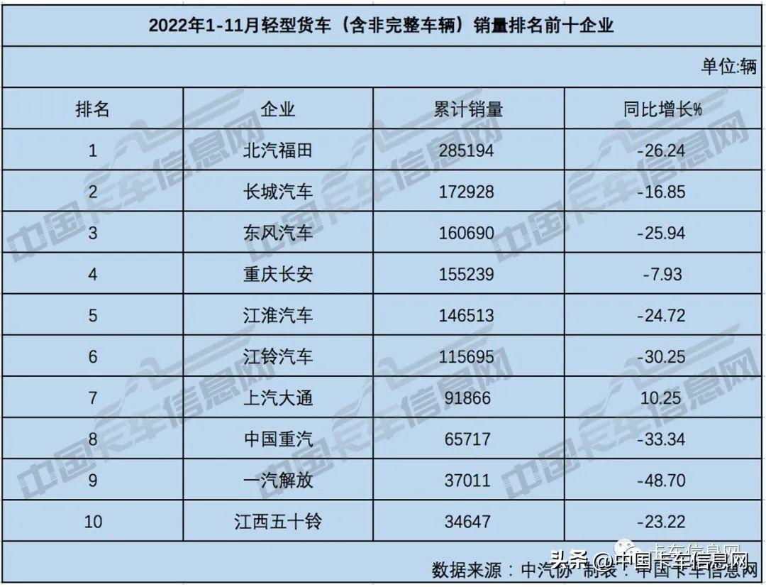 中国十大轻卡车排名(11月份轻卡市场销量排行榜出炉)