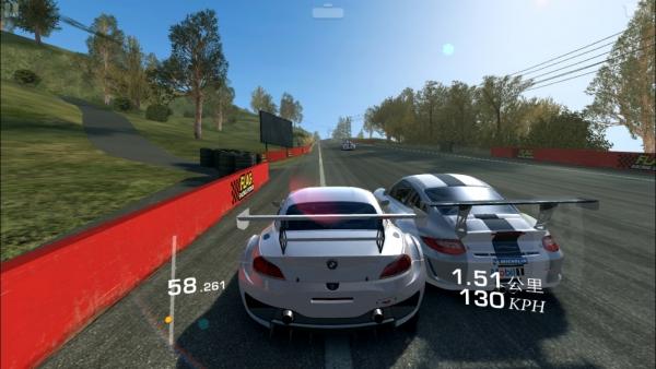 iOS 8还加入了新的Metal图形处理技术,能让游戏的视觉效果更加出众,第一张真实赛车3的截图之中眩光特效为iOS独享,Android版本无此特效。