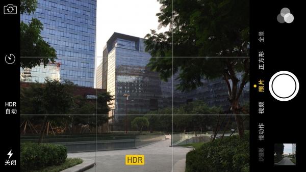 iPhone 6的HDR功能在检测到大反差环境的时候会自动开启,开启时屏幕上会提示用户在此时按下快门键将会记录HDR照片。