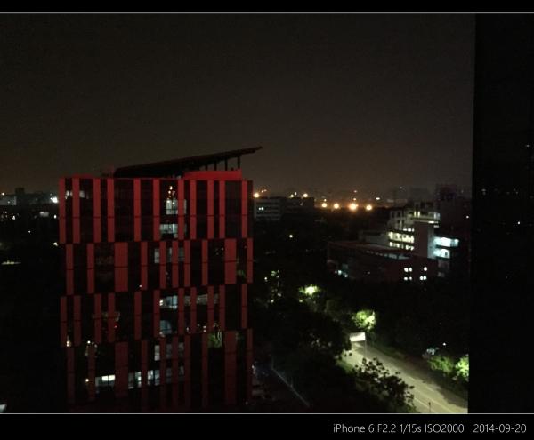开启HDR的夜景样张,画面纯净度尚可,但是细节丢失比较严重,虽然ISO2000的高感光度保证了画面的亮度,但是画面的质量实在是不敢恭维,相信同等情况下配备有光学防抖的iPhone 6 Plus会有比iPhone 6好得多的表现。