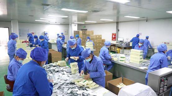 员工在生产车间包装药品 阿不力米提·阿布都拉 摄