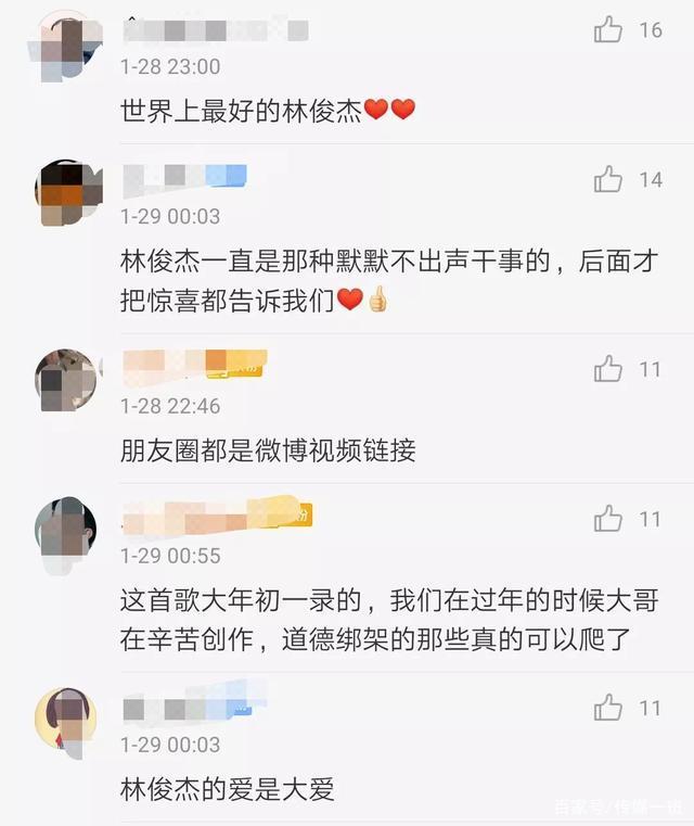 歌词完成了,剩下的交给林俊杰。据粉丝透露,这首歌是林俊杰在大年初一时录制的,大家在过年的时候,他还在不眠不休的创作。