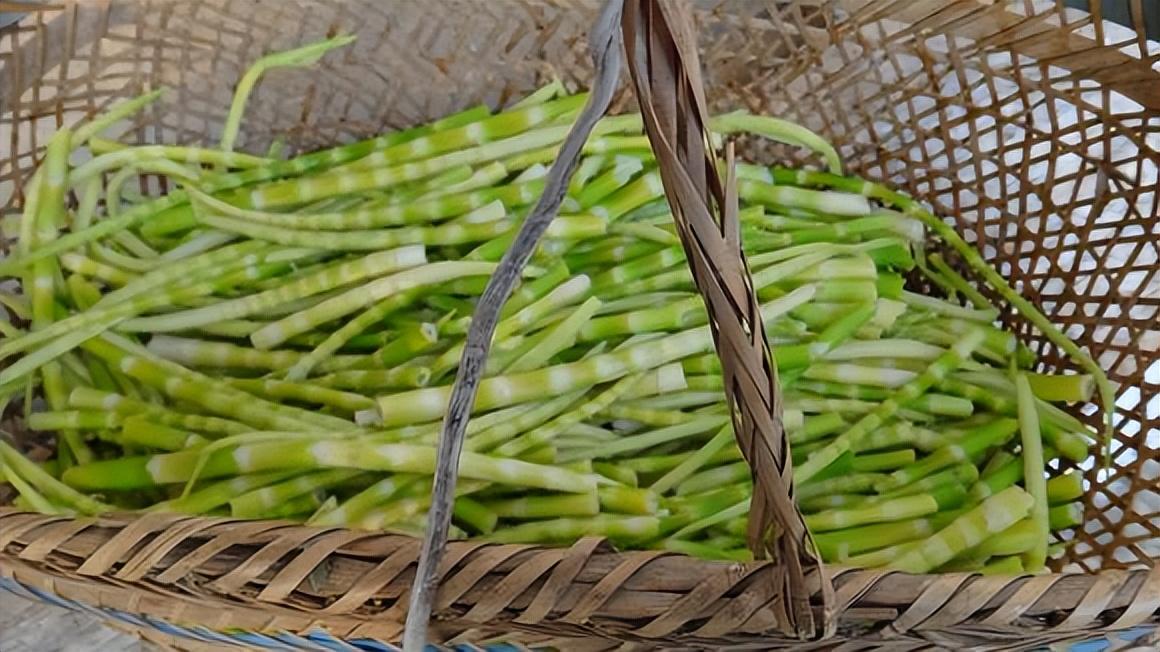 我亲爱的妈妈知道我喜欢吃新鲜的野笋,在我回家的那天给我扳了半篮子,还有一些蕨菜,现在的蕨菜有点老了!