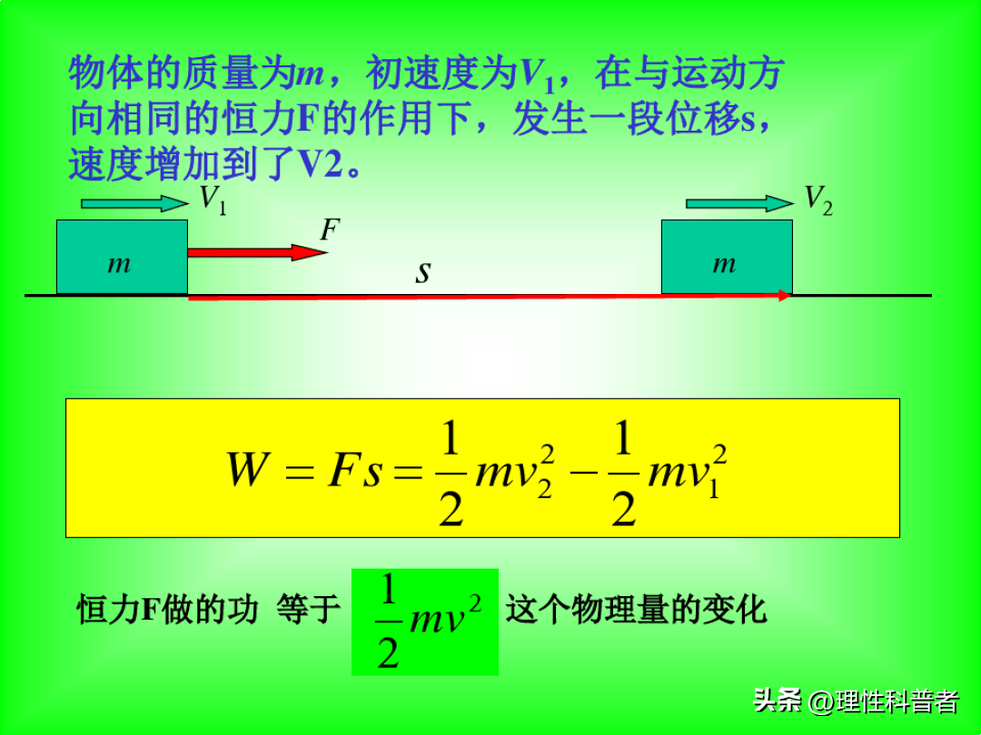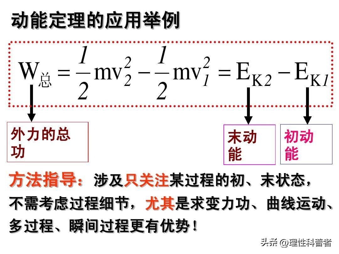 第三,都只需考虑物体运动的始末状态,不需考虑物体运动的中间细节问题,实际应用中,既可以研究恒力变化问题,又可以研究变力的有关问题,既适用于直线运动也适用于曲线运动。