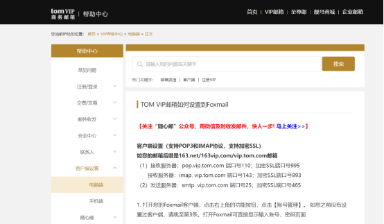 企业电子邮件系统分为收信服务、发信服务, 支持多个客户端如foxmail、outlook等等。公司使用的TOM邮箱电子邮件系统可以设置为: