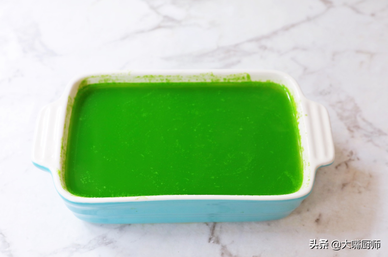 6、把煮好的淀粉糊倒进模具里,用铲子刮平,放凉后放进冰箱里冷藏2小时,定型后凉粉就做好了,吃起来爽滑Q弹,有很浓的黄瓜味,特别清爽。