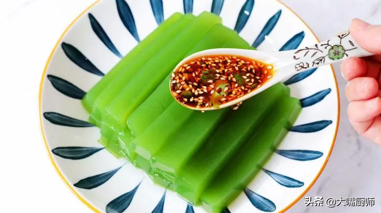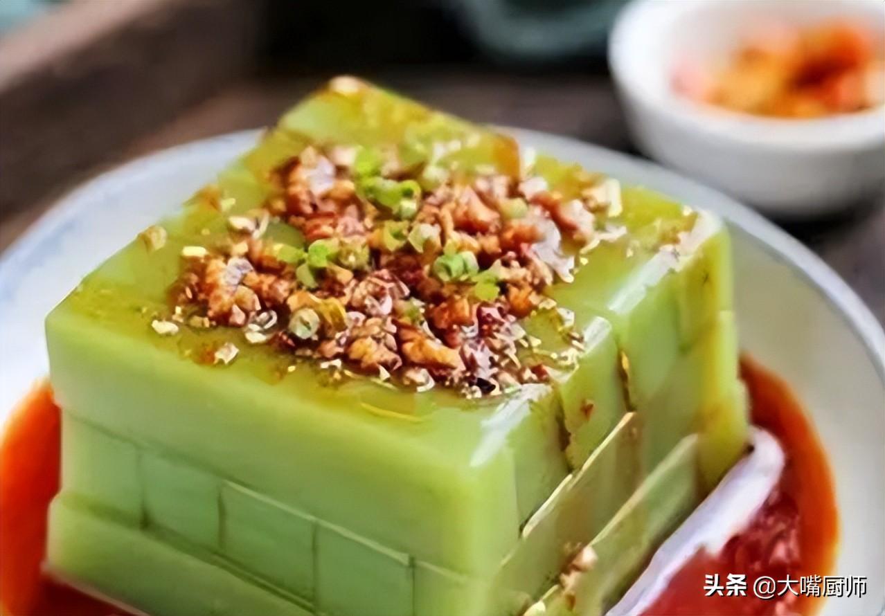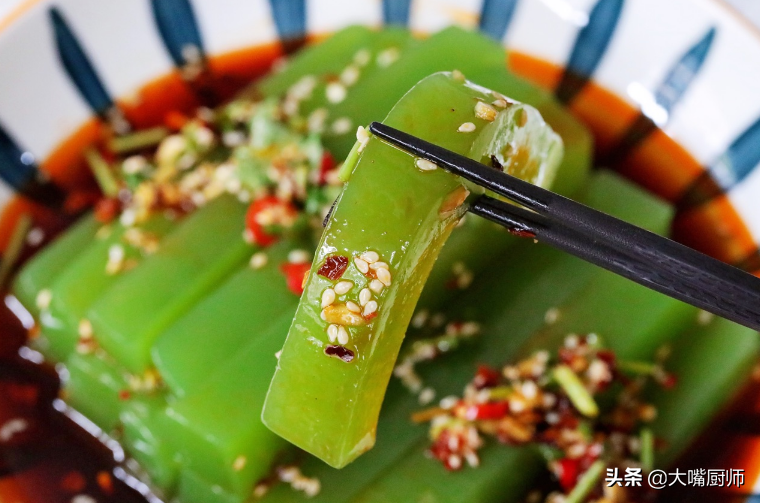 绿油油、亮晶晶的黄瓜凉粉,放在井水里冰镇着,吃的时候切一块,加上蒜末、酱油、醋、辣椒油拌一拌,真香啊!吃起来爽滑可口,吸溜一下就进入嘴巴了,特别Q弹,能提供充足的碳水,补充身体消耗的能量,是夏季必不可少的解暑佳品。