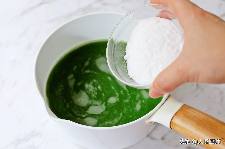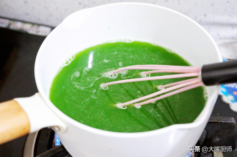 2、煮淀粉糊时,嘴里应该加点盐,能够让凉粉更结实,不容易碎。