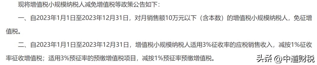 2023年1月9日,备受关注的小规模纳税人增值税减免税政策出台了!分别是