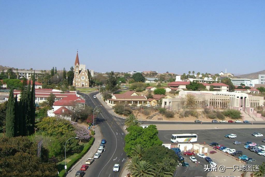 温得和克是纳米比亚的首都,位于国土中央的高原上,人口仅20万,四分之一人口是白人,这也是全国最大城市了,也是全国少有的宜居之地。温得和克由于海拔较高,由于周围有丘陵环绕,减弱了干风侵袭,年最高气温30℃,最低气温7℃,相比于全国其他地方,算的上气候宜人了。