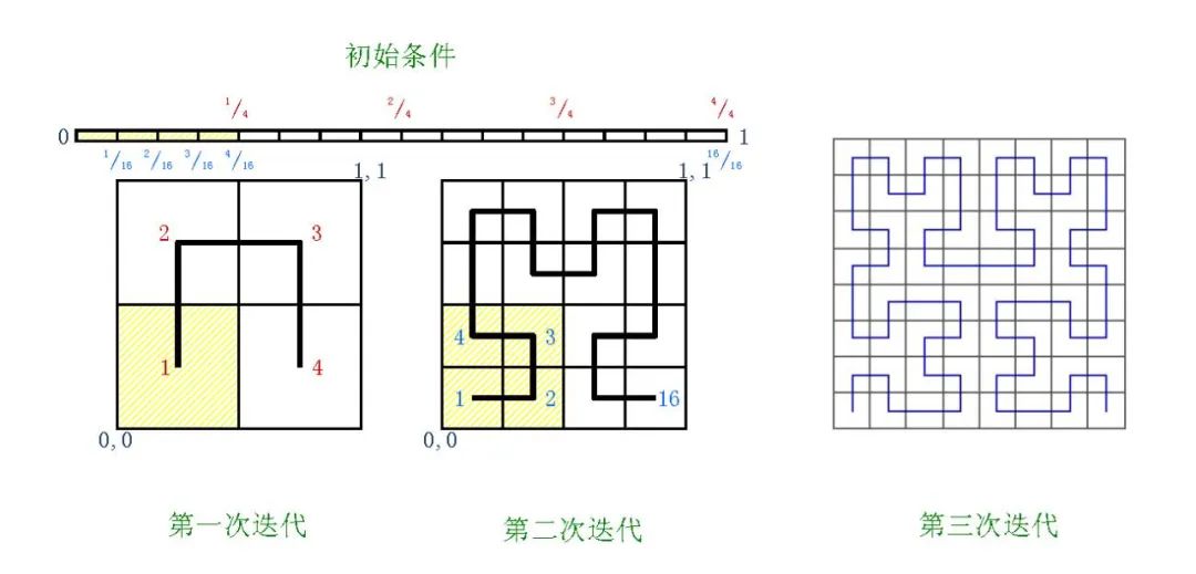 具体地说,希尔伯特曲线是如图15所示来产生的。