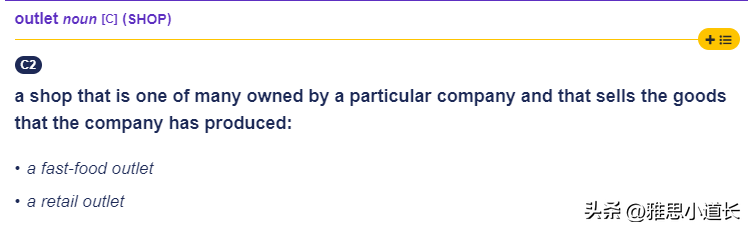 然而英文“outlet”是"出口、出路、排出口"的意思,也有“shop”的含义,指的是“a shop that is one of many owned by a particular company and that sells the goods that the company has produced.”