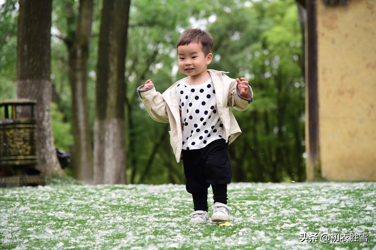 大人们在家午睡,小孩子留在庭院中,风吹起洋洋洒洒的柳絮。