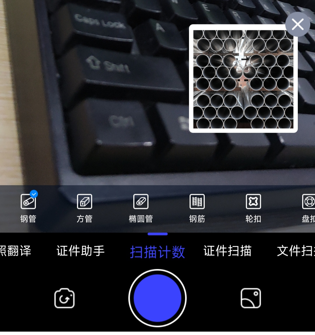 手机搞定扫描计数、钢管计数、方管计数、椭圆管计数、钢筋计数等: