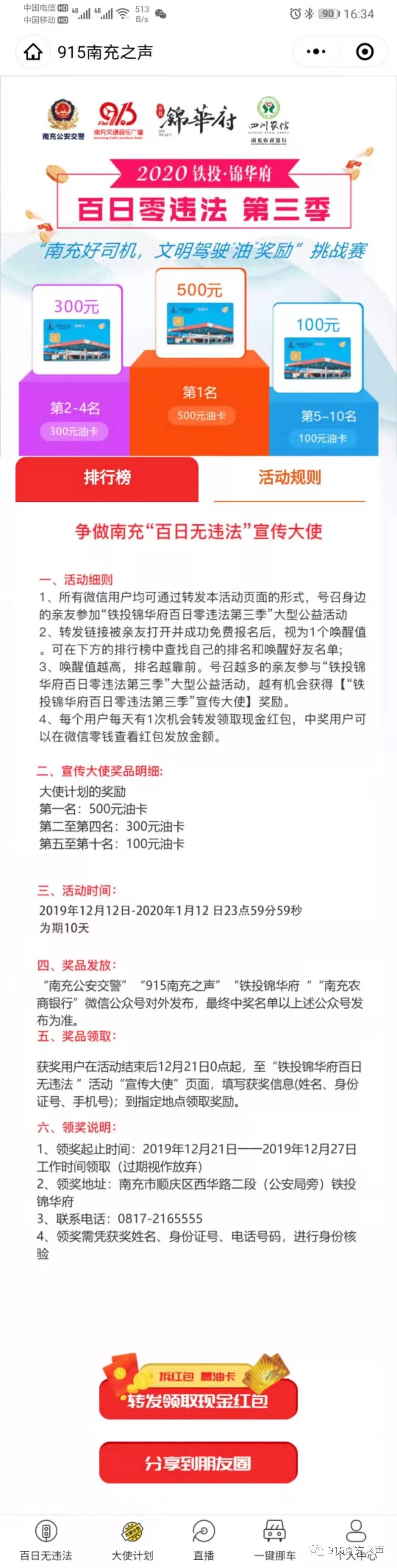 5、以南充市交警支队违法数据库信息录入为准,在100天赛期2020年1月10日--2020年4月19日内),无违章记录的参赛车辆可参与最终抽奖环节。