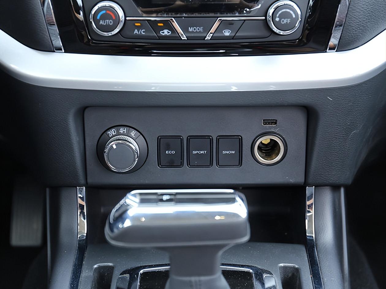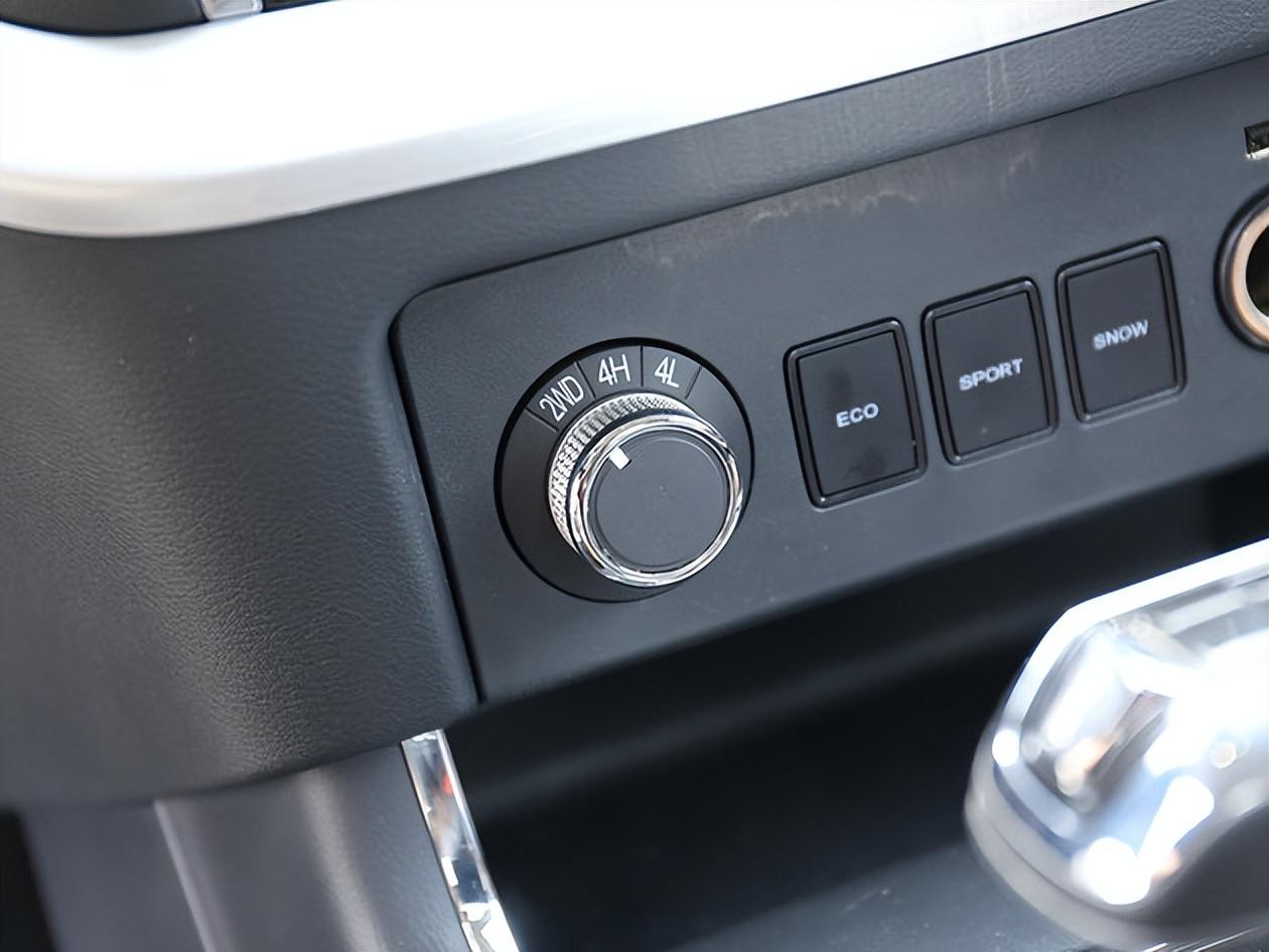我们试驾的是四驱版本,可以通过中控下方的旋钮来调节,实现(2WD、4H、4L),并且有节能、运动、雪地三种驾驶模式。