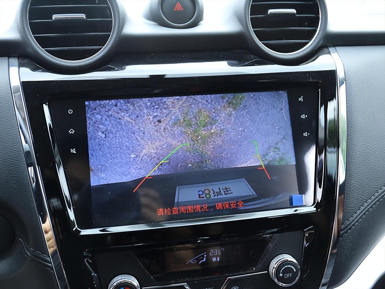 锐骐6平底货箱版装配了360°全景影像,附带彩色动态辅助线的倒车雷达,这么大的车,这个功能很有必要,更能直观看到车辆周围的情况,过于低矮的目标可以及时发现,还是很管用的。
