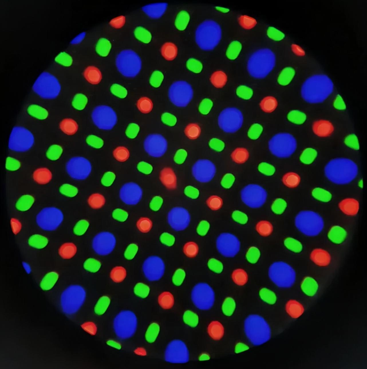 这样OLED的像素点就很容易描述了,因为其实质就是一个个会自发光的彩色灯泡,通过控制灯泡的明暗来呈现不同色彩。换言之,要是这个小灯泡关了,那么它就呈现黑色。